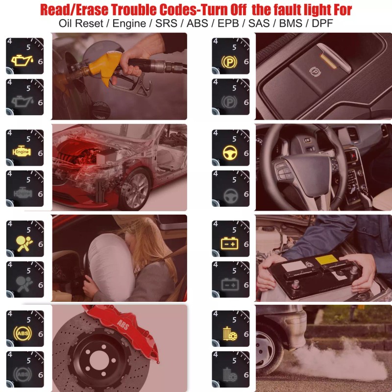 For ABS/SRS : GM, CHRYSLER, F.ORD, A.UDI, ABARTH, ALFA, BENZ, B.MW, BENTLEY, BUGATTI, CITROEN, DACIA, EU FORD, FIAT, JAGUAR, LANDROVER, LANCIA, MINI, MAYBACH, OPEL, PEUGEOT, PORSCHE, RENAULT, SAAB, SMART, SEAT, SKODA, SPRINTER, VW, VAUXHALL, VOLVO, AU F.ORD, HOLDEN, ACURA, DAEWOO, HONDA, HYUNDAI, ISUZU, INFINITI, KIA, LEXUS, MAZD