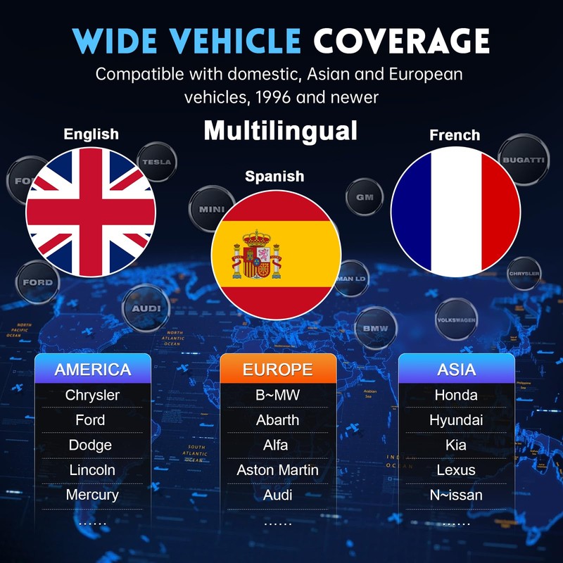 • 🔥🔥【ML619 Extensive Vehicle Coverage】Autel ML619 supports more than 80 US, The scan tool works on most 1996 and newer vehicles (OBDII & CAN) including GM, Ford, Chrysler, Volvo, VW, B~MW, Mercedes, Toyota, Honda, N~issan,Hyundai, Kia, Subaru, Mitsubishi, Peugeot, Citroen, Fiat, Renault, Land rover, Jaguar, etc. NOTE: Not universally compatible with all vehicles. Please send VIN number to 📩 autelpowerful @ outlook.com 📩to check compatibility.