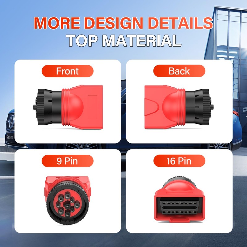 - This adapter turns 9pin J1939 male port to obd2 16pin female port.