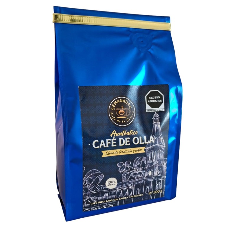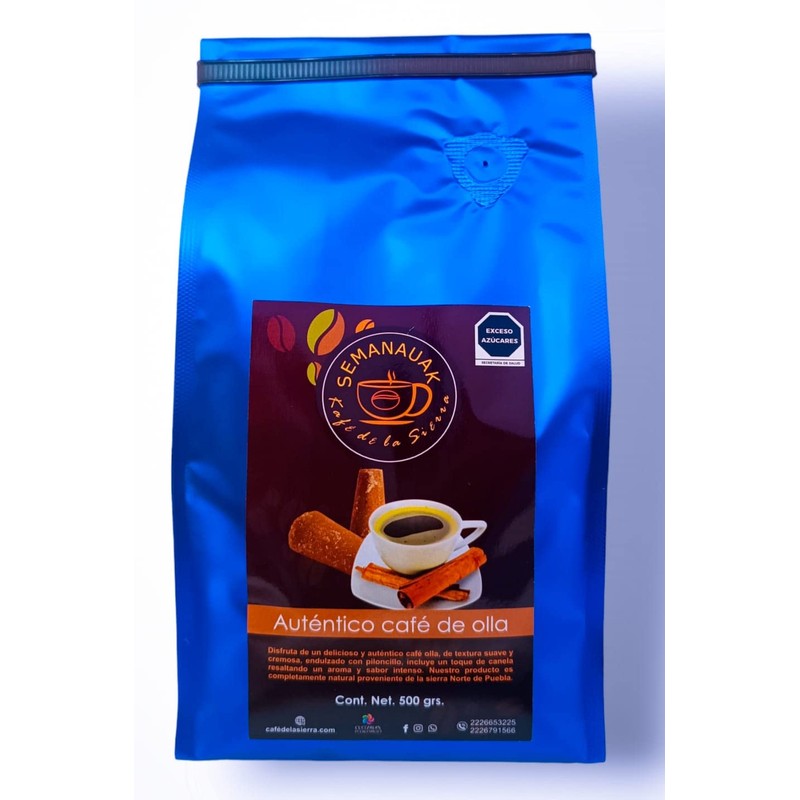 - Le ofrecemos la mezcla perfecta de café, canela y piloncillo para preparar un exquisito café de olla. El tipo de molido es ideal para cafetera con filtro o para olla convencional. Nuestro producto es natural y 100% orgánico cultivado y cosechado de manera artesanal de la región de Cuetzalan en la sierra norte de Puebla, México.