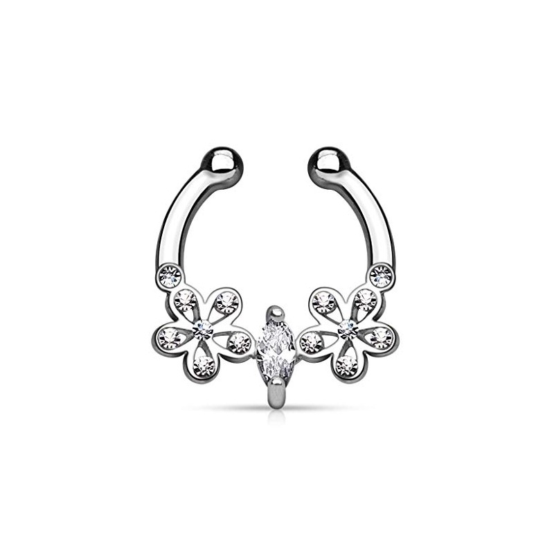 Autiga Nose Piercing Nose Ring Fake Piercing Septum Helix Zirconia Crystals Flower, Brass