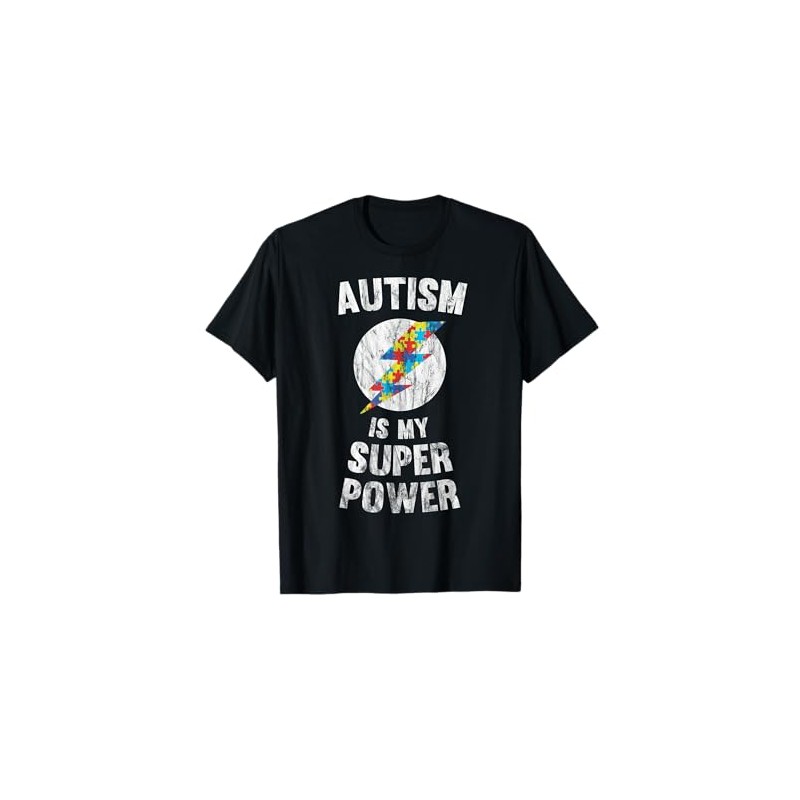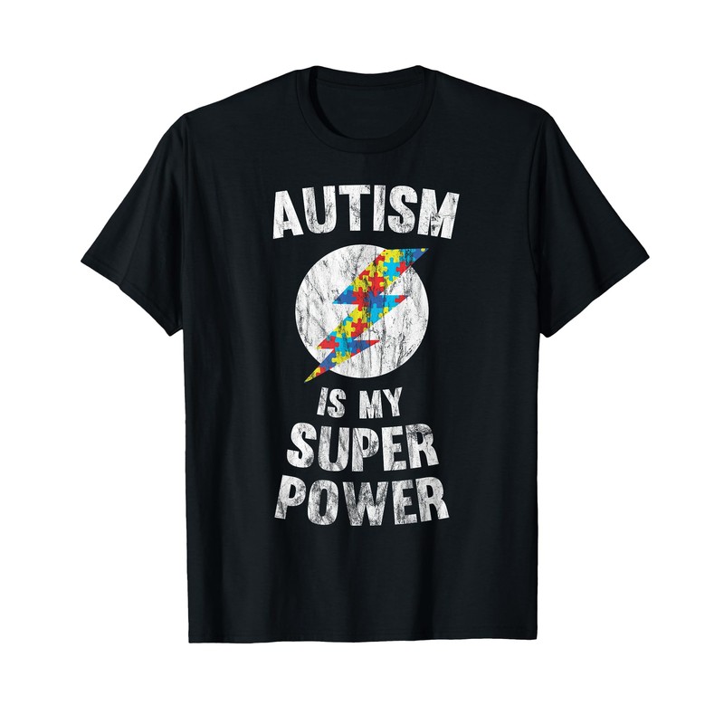 - This distressed vintage tee shirt says autism is my superpower and features the autism awareness lightning symbol. Perfect for men women and kids who are proud to be autistic.