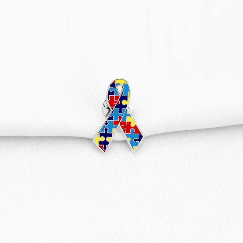 Autism Ribbon Pin Asperger Awareness Jewelry Gift for Autism Mom/Autism Teacher/Autistic Girl, Metal, alloy