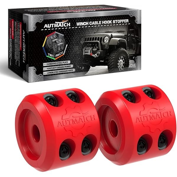 AUTMATCH Winch Cable Hook Stopper (2 Pack), Silicone Rubber Winch Stopper for Wire & Synthetic Rope, Winch Line ATV UTV, Shock Absorbent, Prevent Pulling Bounce and Abrasion, Red