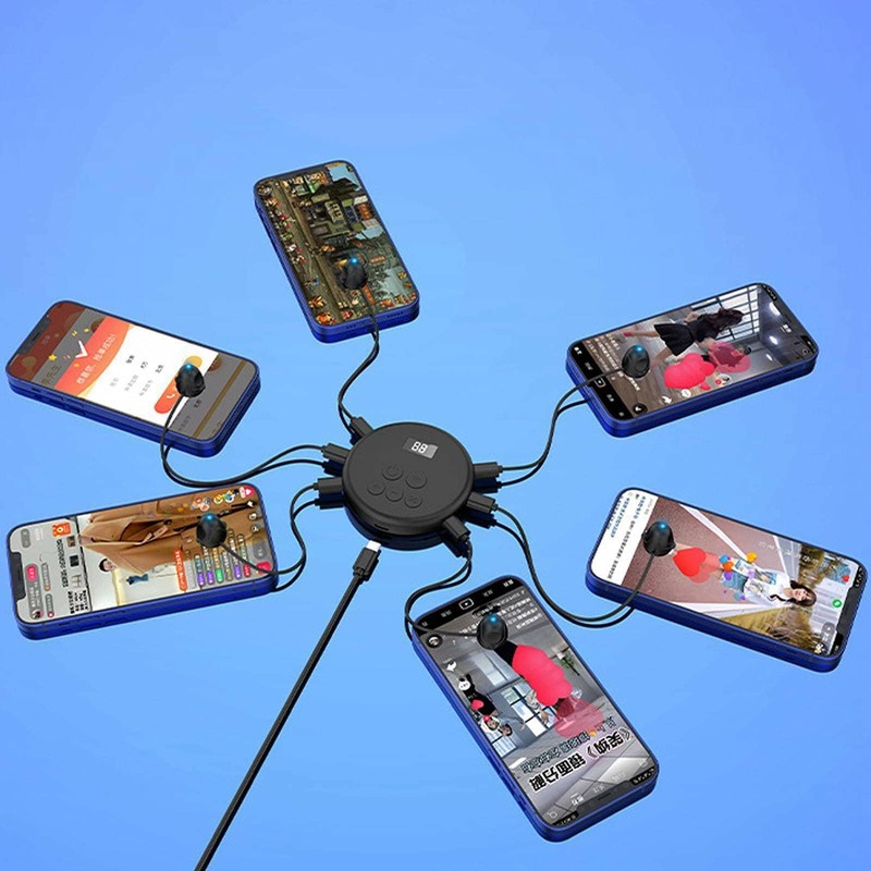 - 6 HEADS - 6 devices directly connected. 6 click heads to click at the same time, like, grab orders, play games, live broadcast simultaneously, support use while charging, and work 24 hours a day.