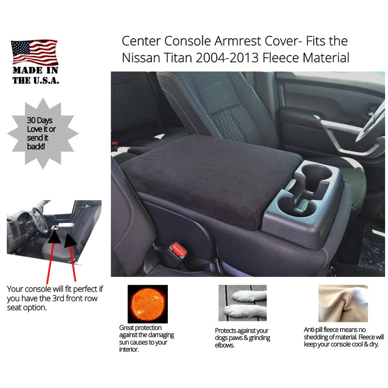 Auto Console Covers- Fits The Nissan Titan 2004-2014 Middle Seat Console Armrest Cover Fleece Fabric. Designed for The 40/20/40 Front cab Configuration.