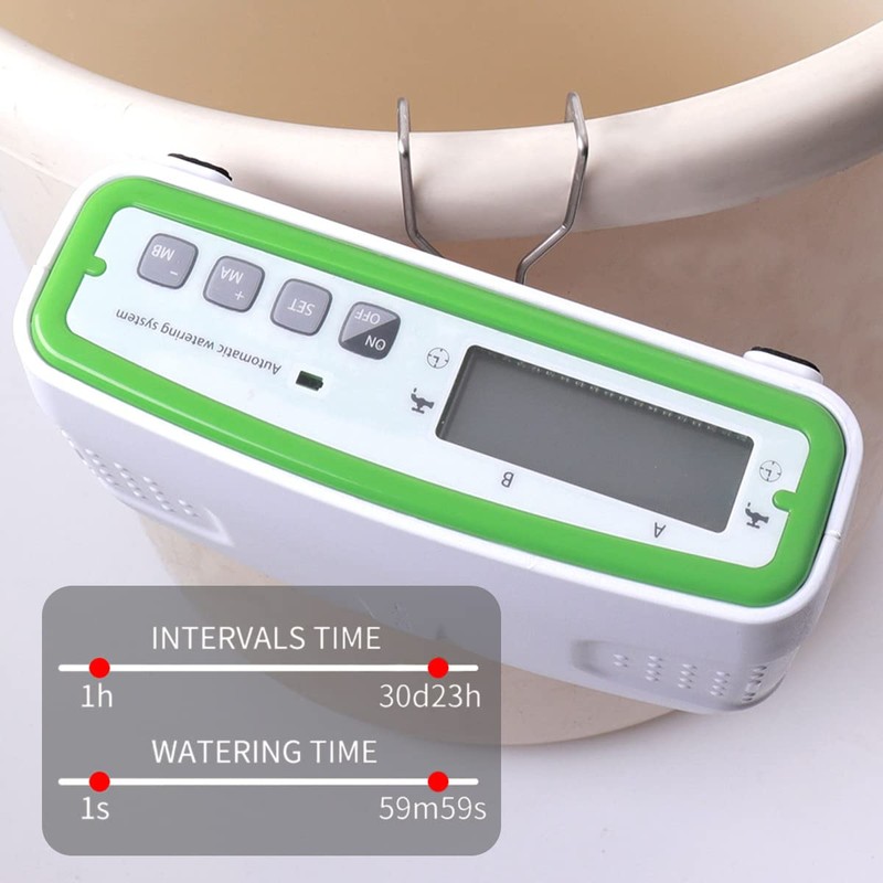 - [LCD Display] The drip irrigation device has large LCD digital display, and you can clearly see the interval time and watering time when setting and programming, easy to set and read.
