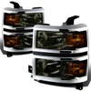 Auto Dynasty Headlights Assembly Compatible with 2014 2015 Chevy Silverado 1500, Driver and Passenger Side Halogen Headlamps Replacement, Smoked Lens Amber Corner