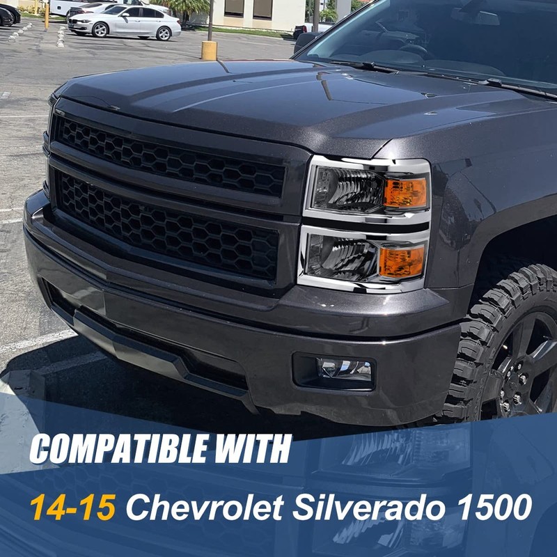 - Vehicle Compatibility - Headlights assembly compatible with Chevy Silverado 1500 2014-2015, fits models with HALOGEN headlights Only.