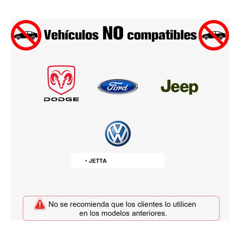 Estimado cliente, esta luz no es adecuada para serie bmw; serie mercedes-benz; serie ford; serie jeep;serie de recogida; series dodge; series Volkswagen Buick; series Volkswagen Jetta; Mitsubishi lancer; Mitsubishi Eclipse; Nissan Frontier; NISSAN March; NISSAN Xtrail truck; Nissan VERSA; Chevrolet Aveo; vehículos de 24V.