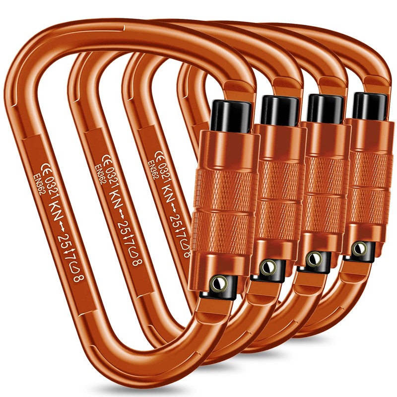 - 【Auto Locking, One-hand Operation】Carabiners are designed to be strong enough to take huge falls over and over, without weakening, twisting, or getting damaged easily.With the twistlock design, very easy to use, you can easily operate this carabiners heavy duty with one hand. Turning the screw, you can lock this caribeaner easily, then turn it in the opposite direction and turn it on again to unlock it.