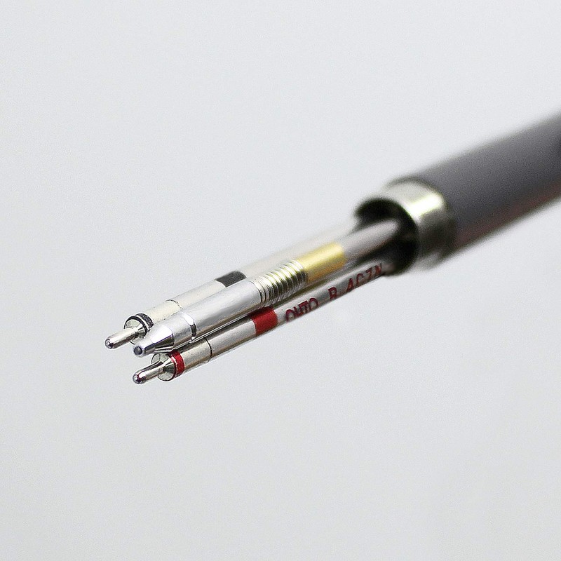 Whether you need a pencil or a pen, at school or at work, this stylish multi pen has you covered. Its sleek, monochromatic body is sturdy yet slim—perfect for slipping into a pocket or a pen case without taking up too much room. Choose a component by holding the pen horizontally, with the desired component's name facing upward, then click the top to extend. Retract the component by pressing the black button on the pen's clip.