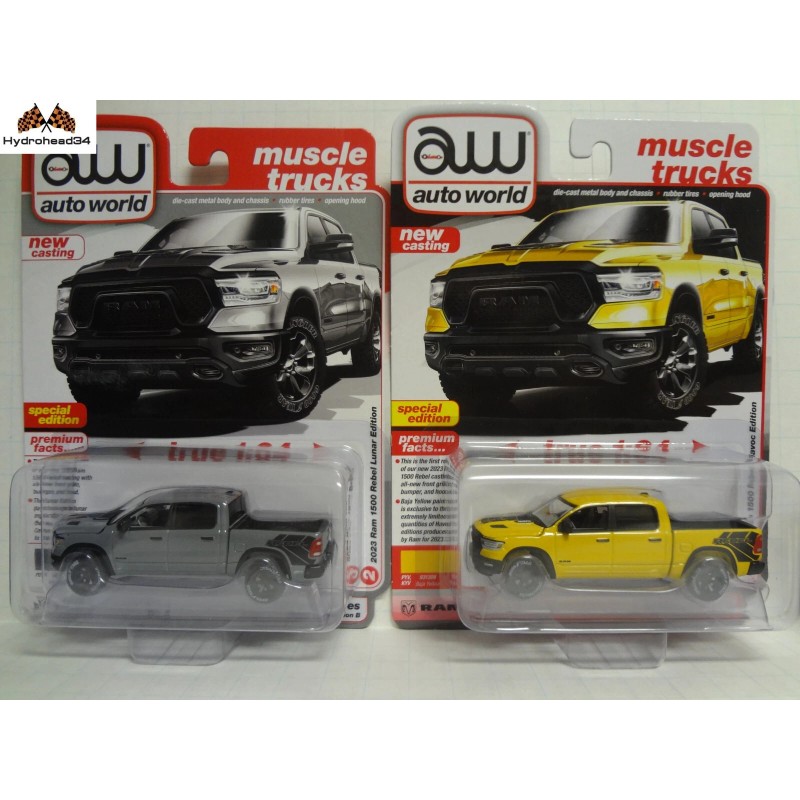 Auto World 2023 Dodge RAM 1500 Rebel Lunar Edition yellow & gray bundle