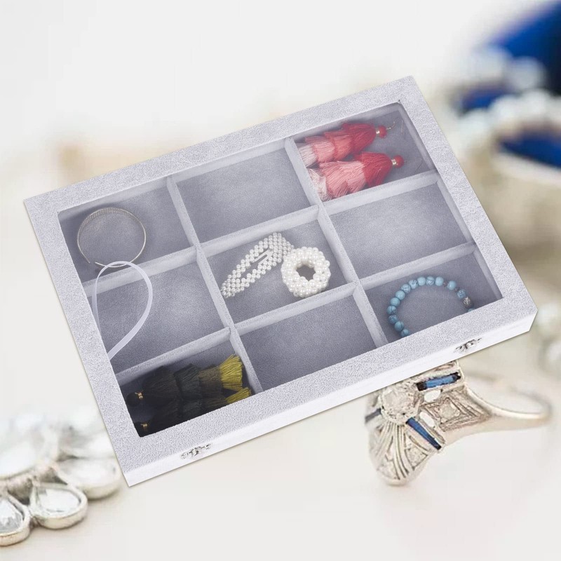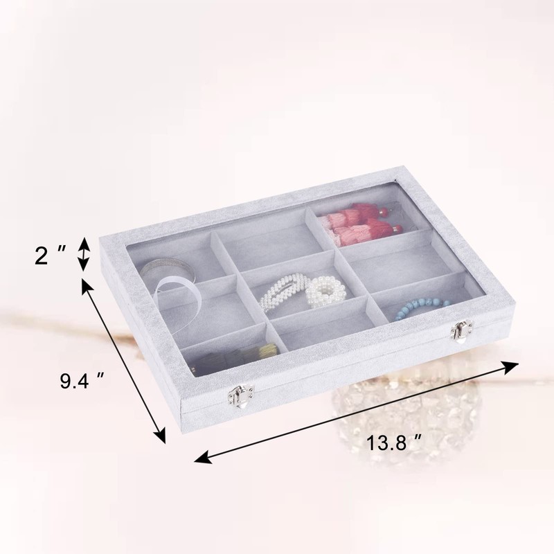 AUTOARK Ice Velvet Clear Lid 9 Grid Jewelry Tray Showcase Display Organizer,AJ-029