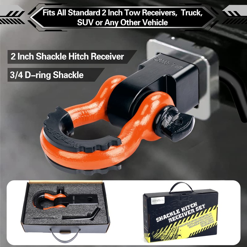 • High-strength: our tow hitch receiver consisting of carbon steel with a breakpoint of 45,000 lbs. Shackle silicone isolators to prevent scratching when mounted. This shackle hitch receiver accessory is suitable for all towing applications