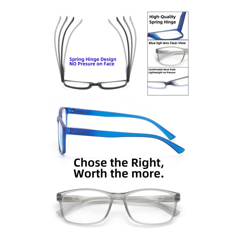 Autojouls Nearsighted Glasses Distance Blue Light Blocking Spring Hinge Glasses and Case Not Reading Glasses, Matte Gray Frame -2.5 x