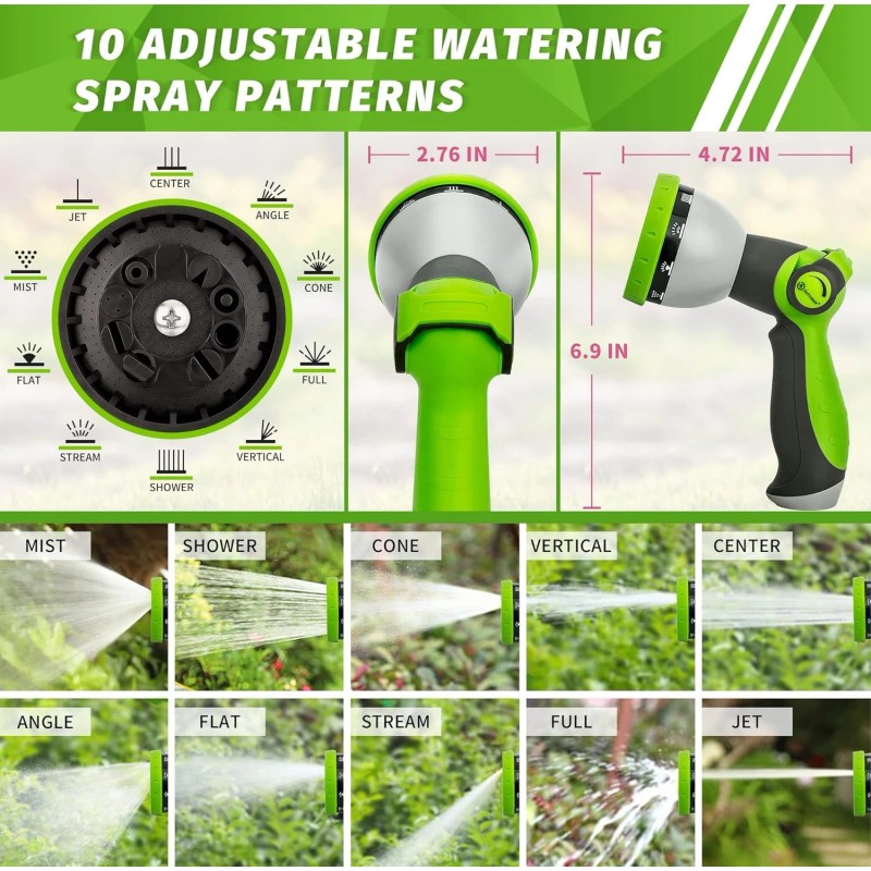 - Thumb Control Hose Sprayer: The water hose sprayer with thumb control allows for easy adjustment of the water flow, ensuring efficient use of water. With a simple pushing open of the controller, users can easily increase or decrease the water pressure, allowing for more precise watering. This feature helps conserve water and reduce wastage.