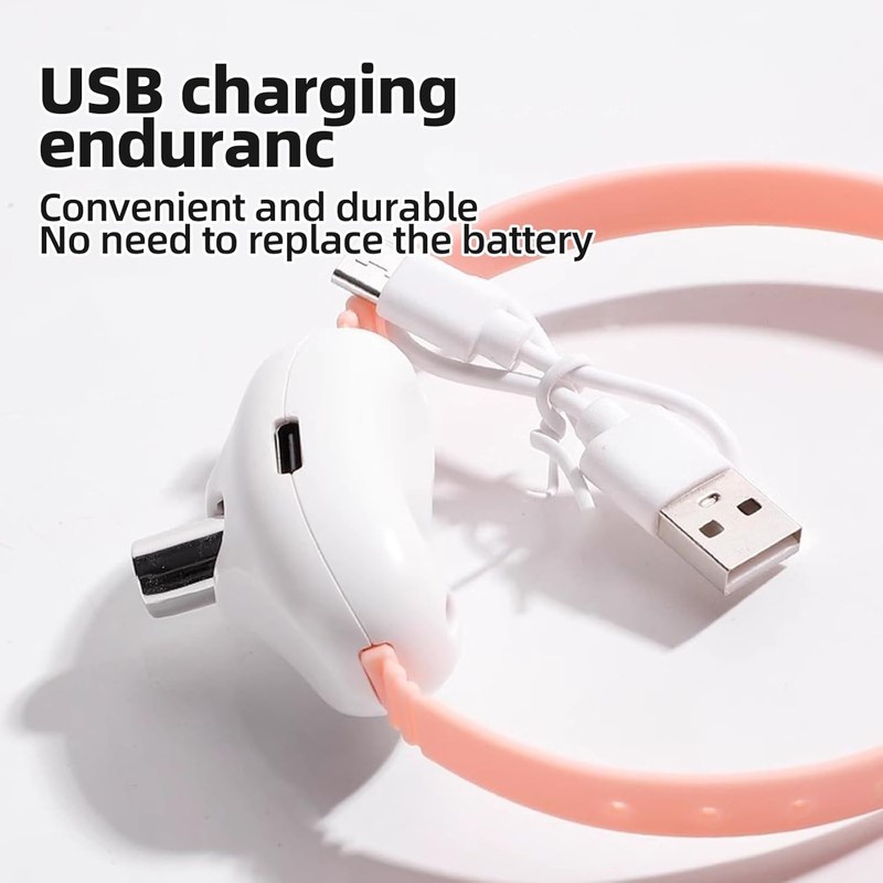 • Rechargeable -This cat collar light toy is rechargeable. The package comes together with a manual, and a USB charging cable which can be plugged in to charge. The working time is about 1-2 days after fully charged; Tips on how to wear: Make sure to wear this on with the USB charging port side facing to the bottom.