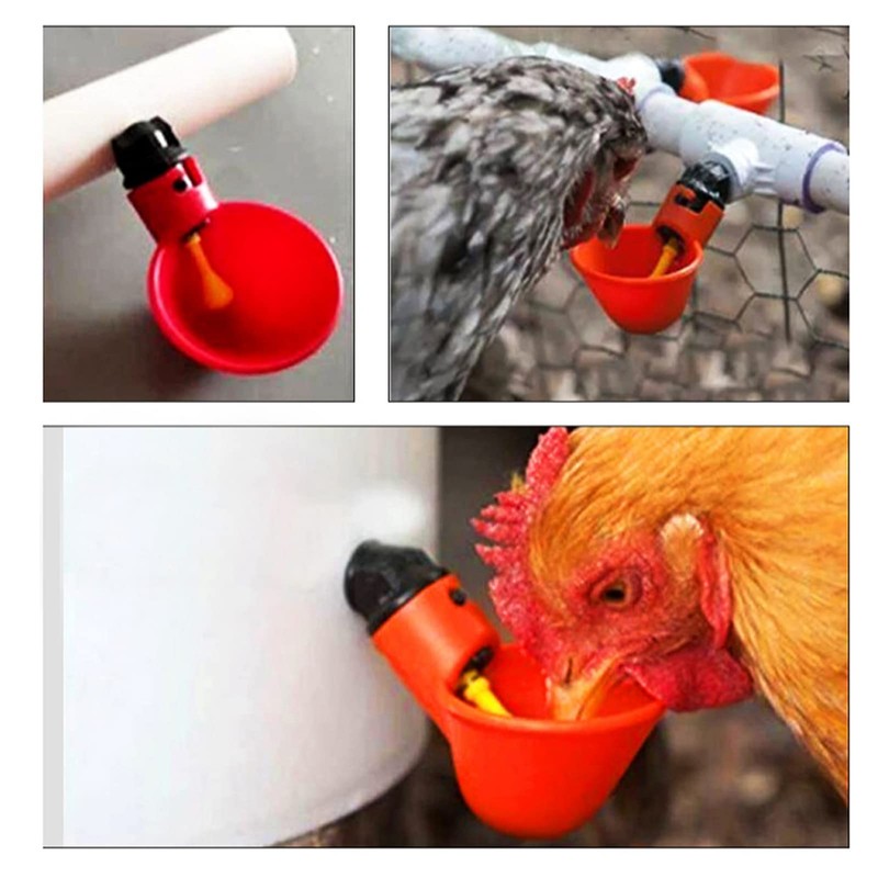 - When chickens peck the trigger, the chicken waterer valve automatically releases water into the plastic cup
