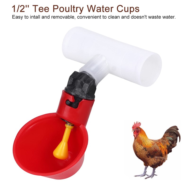 Automatic Chicken Water Cups, 10Pcs Chicken Waterer PVC Tee Fittings with 1/8 Inch FTP Threads for Chicken Quail Duck