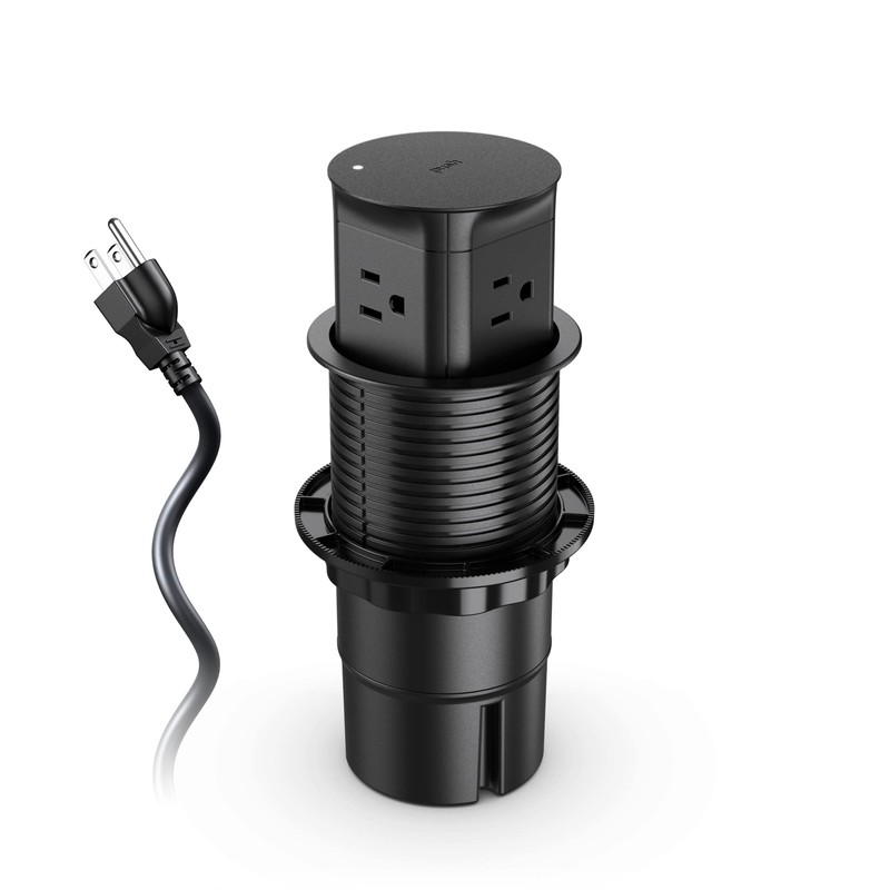 - Countertop Pop up Outlet: Fully automatic retractable desktop design,this unique grommet power outlet get rid of hefty adapters and messy plugs.