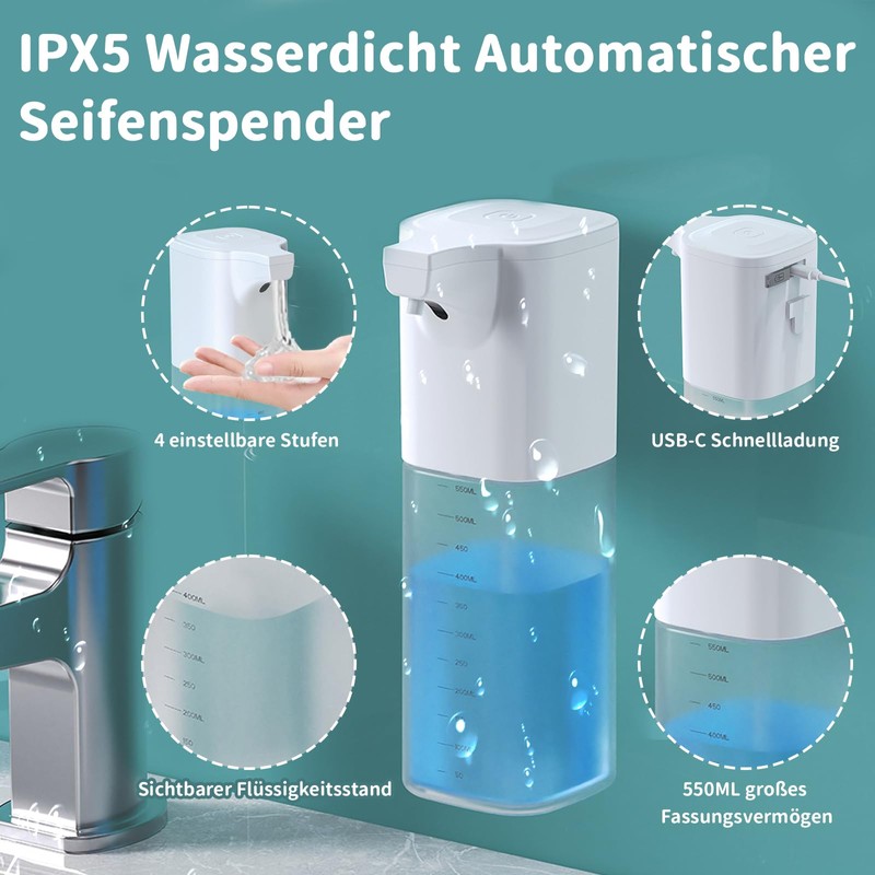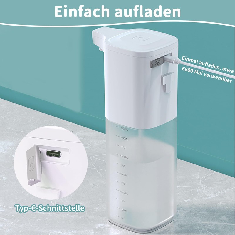 Automatic Soap Dispenser, 550 ml, Electric Soap Dispenser, Rechargeable with ...