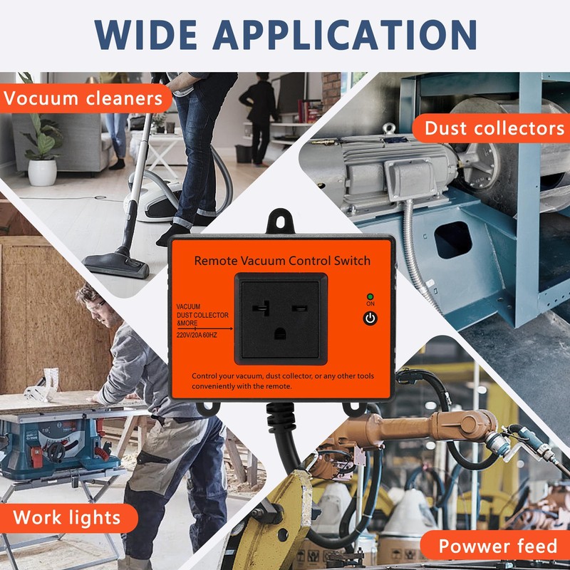 - Easy to Use: suitable for vacuum cleaners, dust collectors, work lights, motors, etc. Maximum motor rated power should not exceed 220V/20A 50/60Hz.
