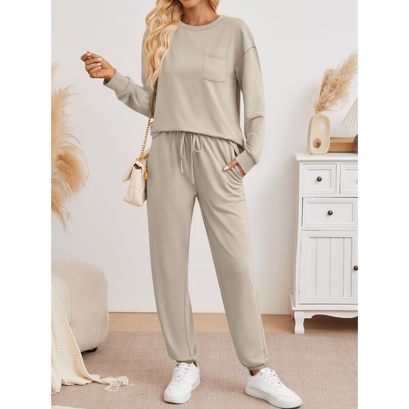 - Features: Long sleeve outfits, loungewear set, joggers pants with adjustable drawstring, solid color, relaxed fit style, womens 2 piece sweatsuits.It uses smooth,stretchy and high-quality fabrics to ensure that you can feel comfortable while you are relaxing or exercising