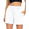AUTOMET Womens Sweat Shorts Casual Summer Drawstring Comfy Elastic High Waist Running Clothes with Pockets White L