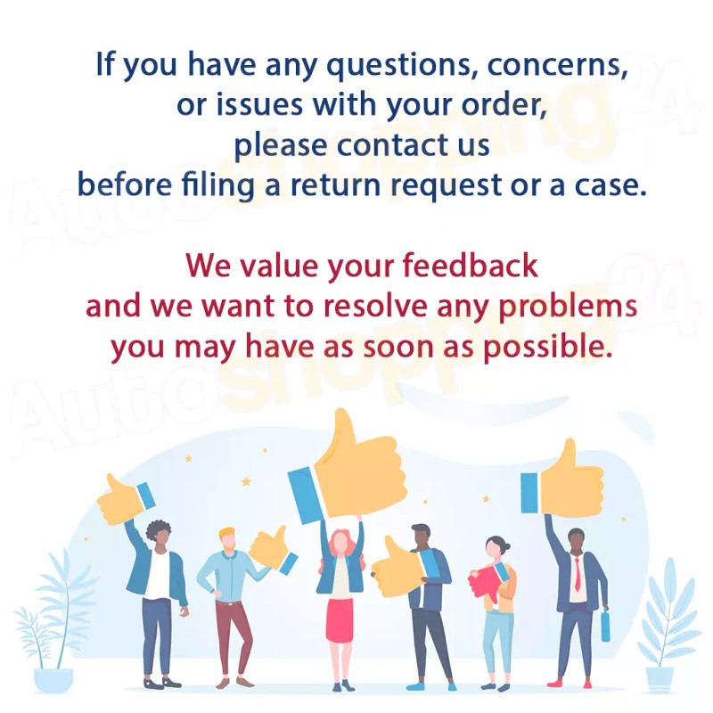 • All products returned are assumed to be in new and saleable condition unless the customer indicates otherwise at the time of submission. Re-boxing fees will be assessed on items received with damaged packaging. This fee may include shipping or other charges levied by the manufacturer. Any product returned in damaged, used or otherwise unsaleable condition may be returned to the customer or credit given at lower value, at the discretion of Autoshopping24.