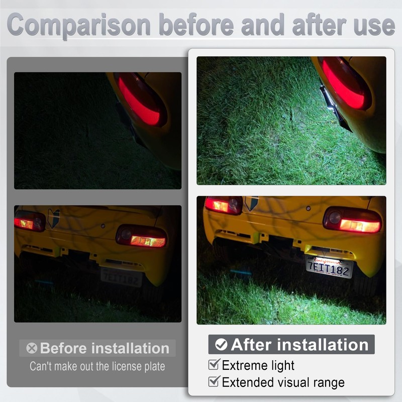 - Just fit the hole distance of the license plate, very simply 2 wires hook-up installation.