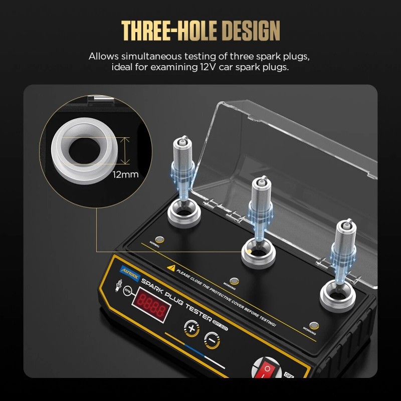 AUTOOL Spark Plug Tester 3 Holes Diagnostic Tool 12V Gasoline Car Ignition Analyzer