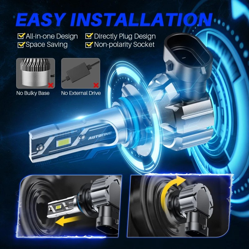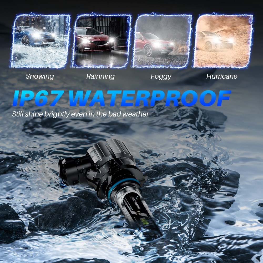 Built with a durable aluminum body, high-temperature resistant and an IP67 waterproof rating, AUTOONE 9005/HB3 bulbs are ready to perform in all weather conditions. Designed to be fanless of no noise, and last up to 50,000 hours, giving you reliable performance for the long term.