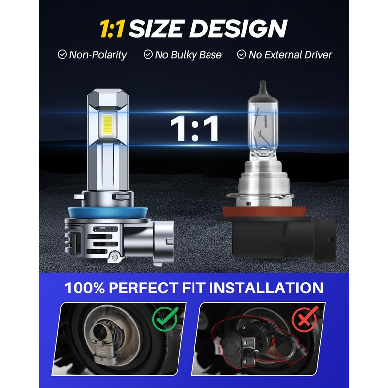 - High Compatible: CANBUS ready for 99% vehicle systems for h11 halogen bulbs