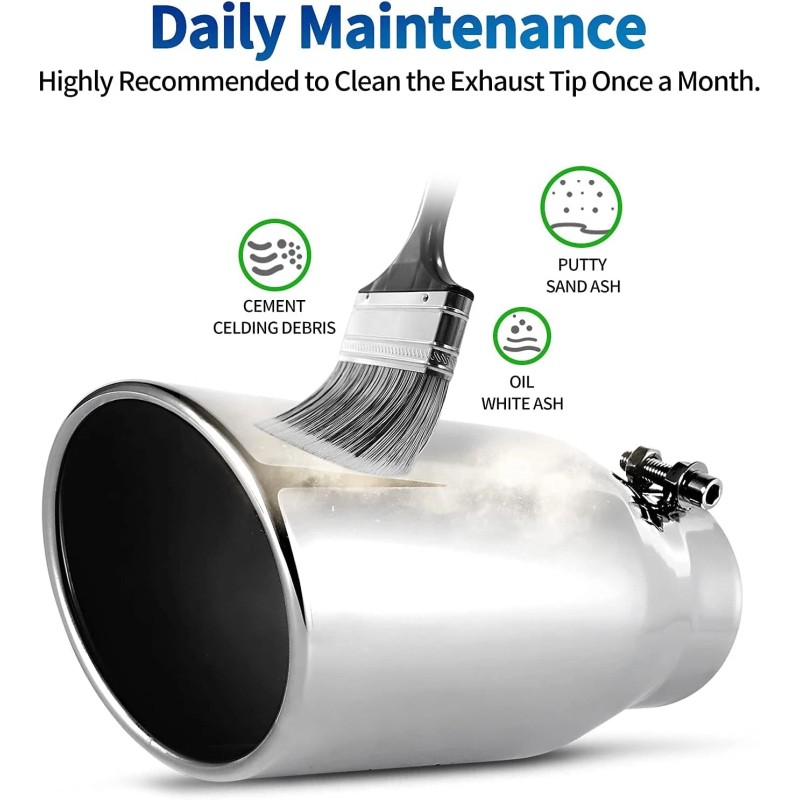 - Daily Maintenance: To make this exhaust tip has a long-life service - Please Sweep away the welding debris, cement, oil, white ash, putty, sand ash regularly to keep the surface clean. We recommend to do above action once a month (NOTE: Professional installation would be highly recommended)