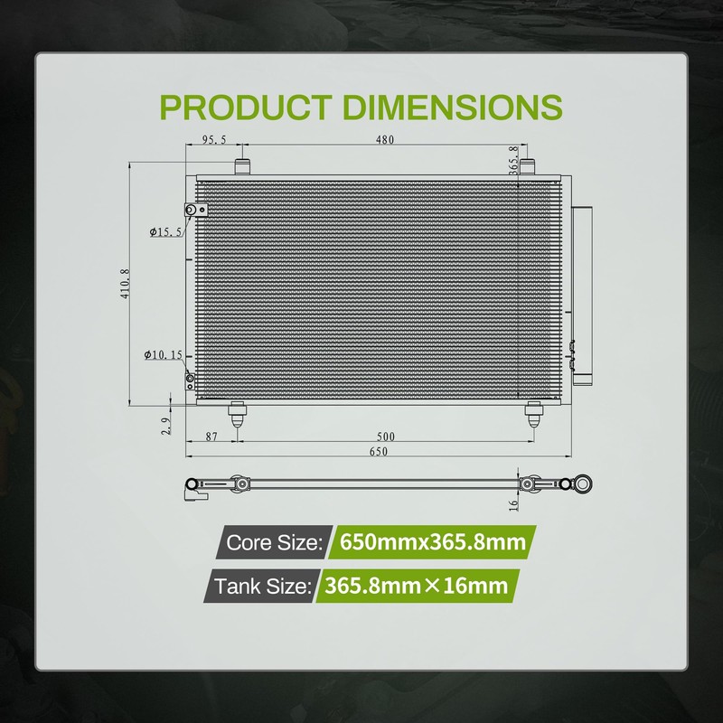 - Package contents: Comes with 1x new complete condenser and fixed foam in four corners to protect the A/C Condenser and ensure it arrives in well condition. Professional installation would be highly recommended