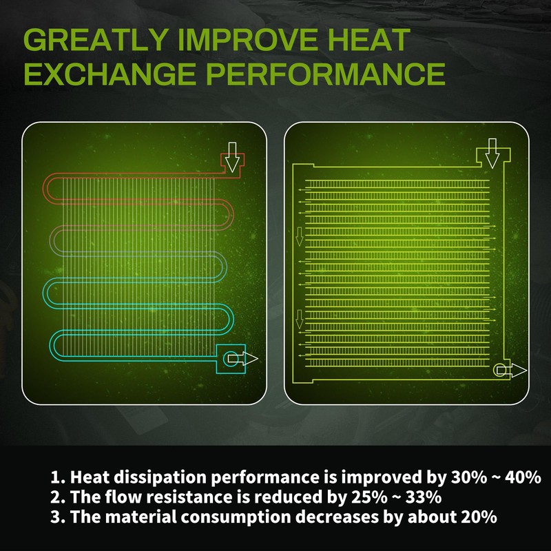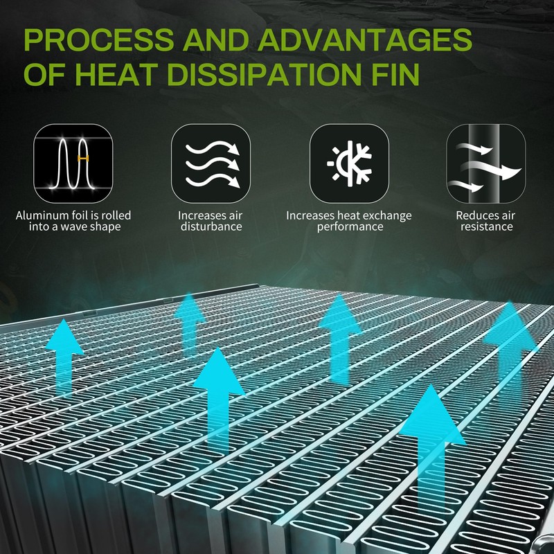 - Maximize cooling efficiency: Built with high-density multi-louvered fins to improve cooling efficiency and ensure durability in extreme cold weather. The corrugated aluminum fins and tubes are connected by brazing, providing unparalleled performance and durability