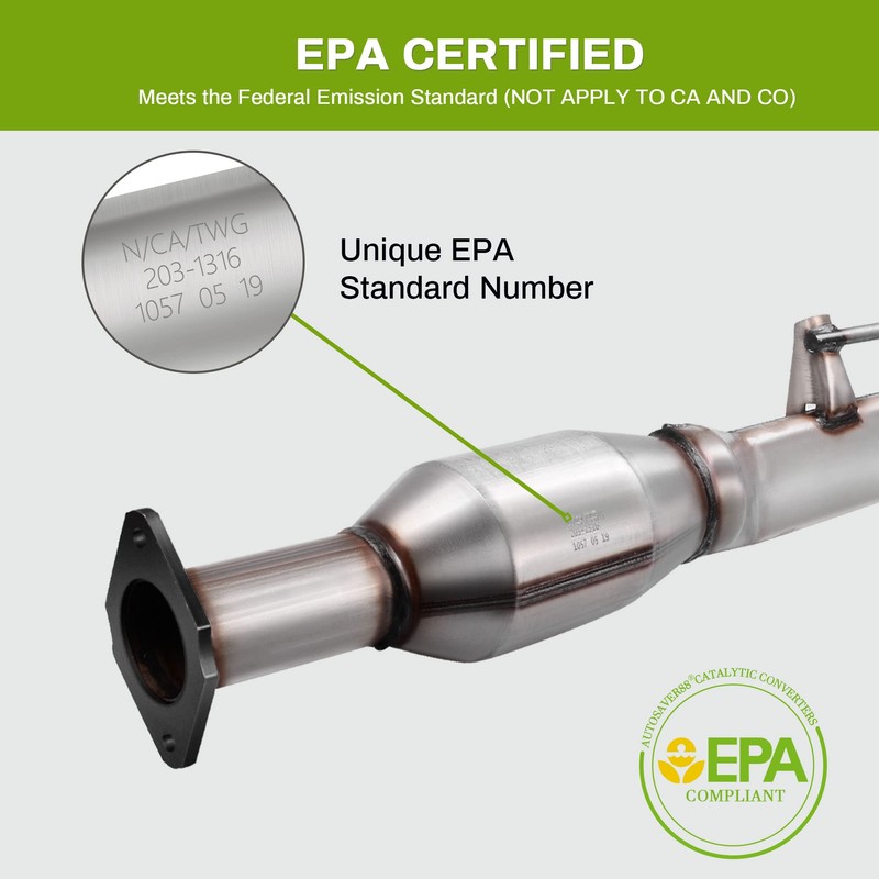 - EPA CERTIFIED: EPA Federal Standard Certificated, all AUTOSAVER88's catalytic converters are stamped with an exclusive EPA number on the shell. AUTOSAVER88 offers a 5-year or 50,000 miles limited warranty, for any manufacturer defect.(NOTE: Professional installation would be highly recommended)