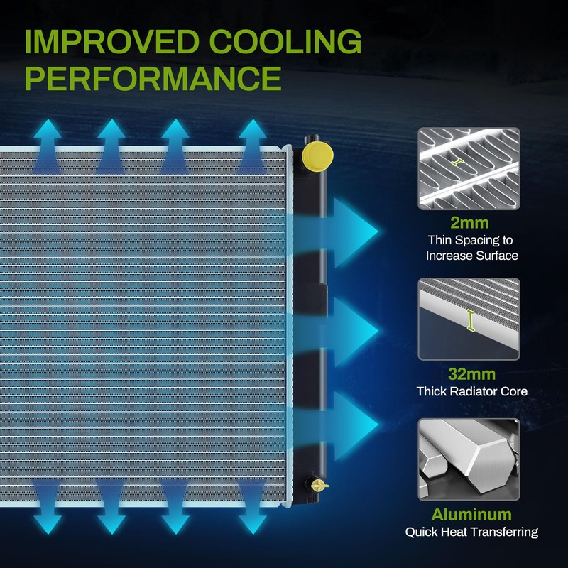 - LEAKPROOF MATERIAL: Each product undergoes thorough leak inspection; High-grade plastic tanks and aluminum cores ensure long-lasting radiator performance