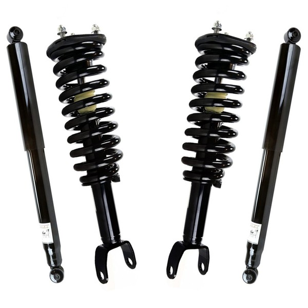 - This package contains 2 front complete strut assemblies and 2 rear shock absorbers. Each complete strut comes pre-assembled with a strut, coil spring, strut mount, boot, bumper kit, spring seat and isolator. A spring compressor is not required for installation