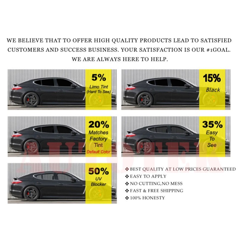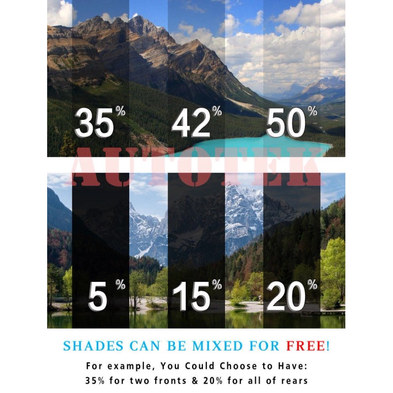 - Visible Light Transmission: 05% 10% 15% 20% 25% 35% 45% 55% 70%