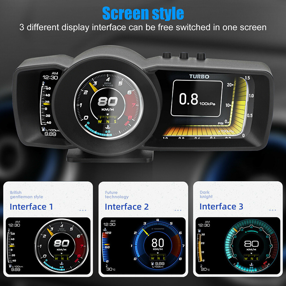 AUTOTO Head up Display OBD2+GPS Dual System HUD Digtial Speedometer with 3 LCD Screens