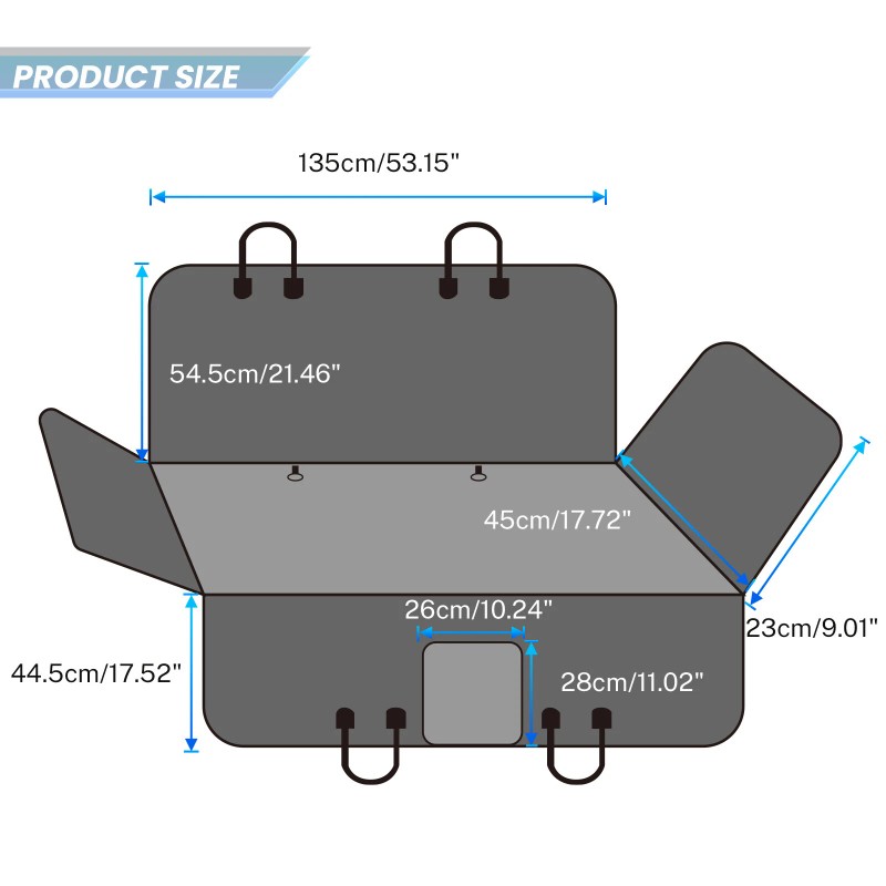 3.Universal Fitting: Measuring approximately 54x57 inches, it is perfect size for most cars and family SUVs.Rugged Protection: The cover is securely anchored in the back seat with included buckle making sure it stays still and neat even during quick turns and speed bumps.