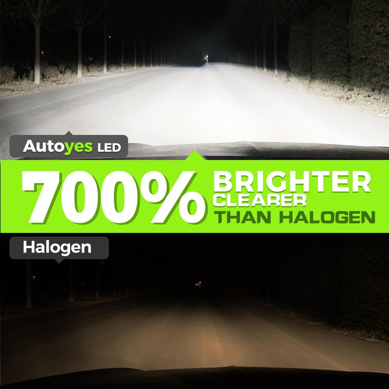 - 700% Brighter Than Halogen: Autoyes H1 LED Headlight Bulb is designed with lastest 8pcs top CSP LED chips, 700% brighter than original halogen H1 bulbs, 22000LM ,6500K cool white , Boost wider and further visibility for safe night driving can make signs, animals and obstacles can be seen clearly , No longer need to worry about driving on wet, rainy night, foggy and icy extreme weather once has Autoyes LED headlight bulbs.