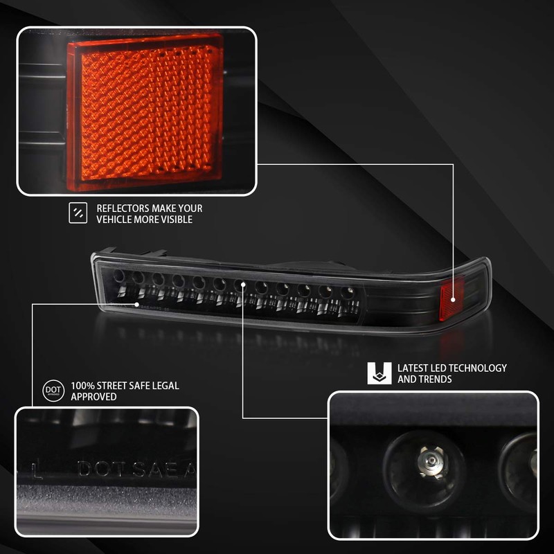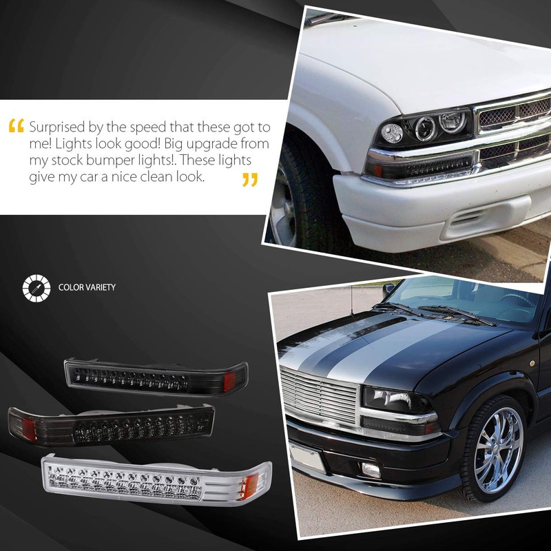Autozensation Compatible with Chevy S10 Blazer GMC Sonoma 1998-2004, Black Housing Clear Lens LED Bumper Lights, L+R Pair Assembly