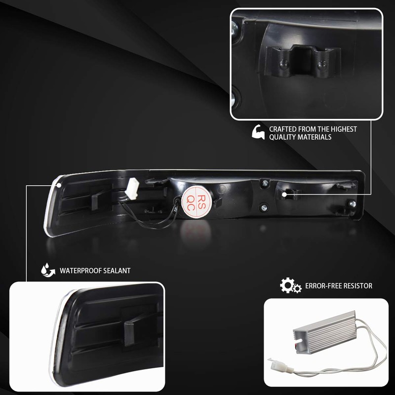 100% brand new in original packaging. Product will be received exactly the same as shown in the picture! Come with both LED style bumper lights. High quality black housing clear lens bumper signal lights with amber reflector. All wiring are pre-assembled for the essential plug and play application. Comes with 12V 50W 5.6ohm resistors, one for each side. These lights are made by an OE approved and ISO certified manufacturer with the quality that meets or exceeds all the OE standard. Professional installation is recommended.