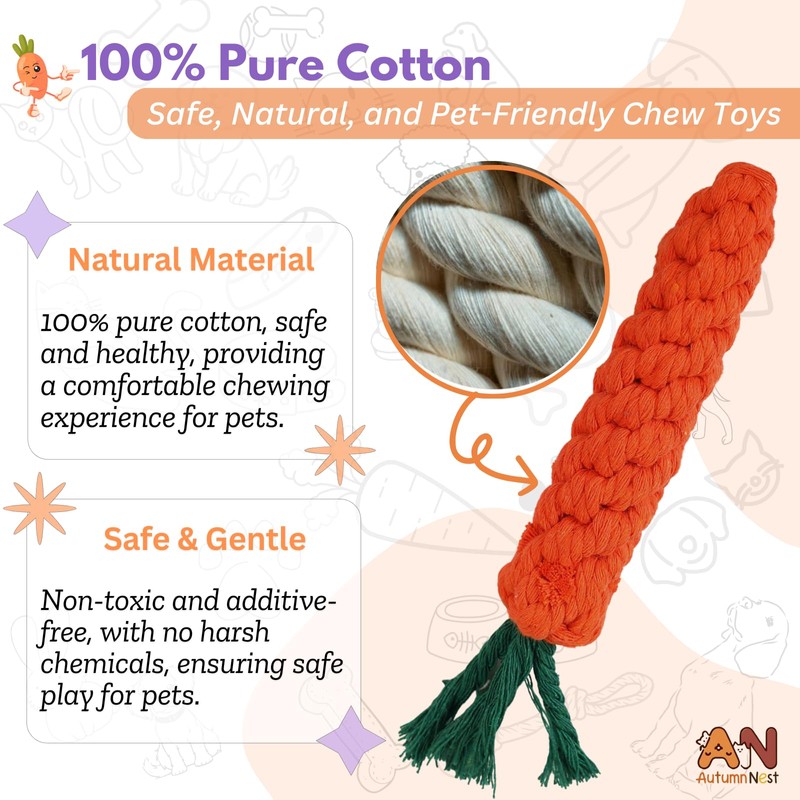 - Multi-Pet Suitable: The AutumnNest 3PCS Woven Carrot Pet Rope Toys are designed for dogs, cats, rabbits, and other small pets, making them ideal for a variety of animals, from puppies to adult pets.