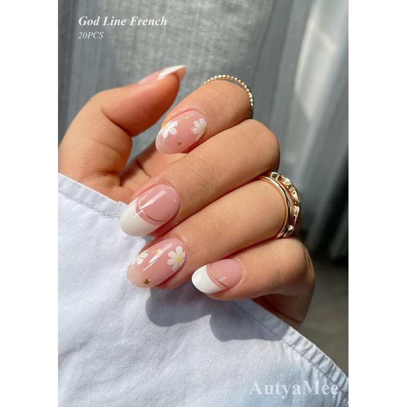 AutyaMee Semi Cured Gel Nail Strips (God Line French), Summer Flower, 20 Pcs Gel Nail Wraps, Stickers, UV Light Required