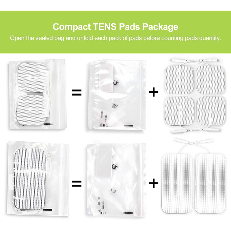 - Industry-leading TENS Pads: The included electrode pads can provide excellent self-stick performance for up to 45 uses. The shaped 2" TENS electrodes are recommended for more compact pain areas like the knees or elbows. Meanwhile, the bigger 2"x4" reusable patches are perfect for larger areas such as the back for TENS pain relief