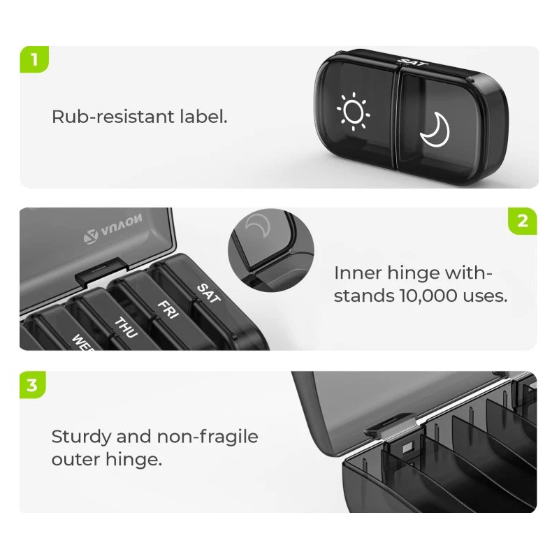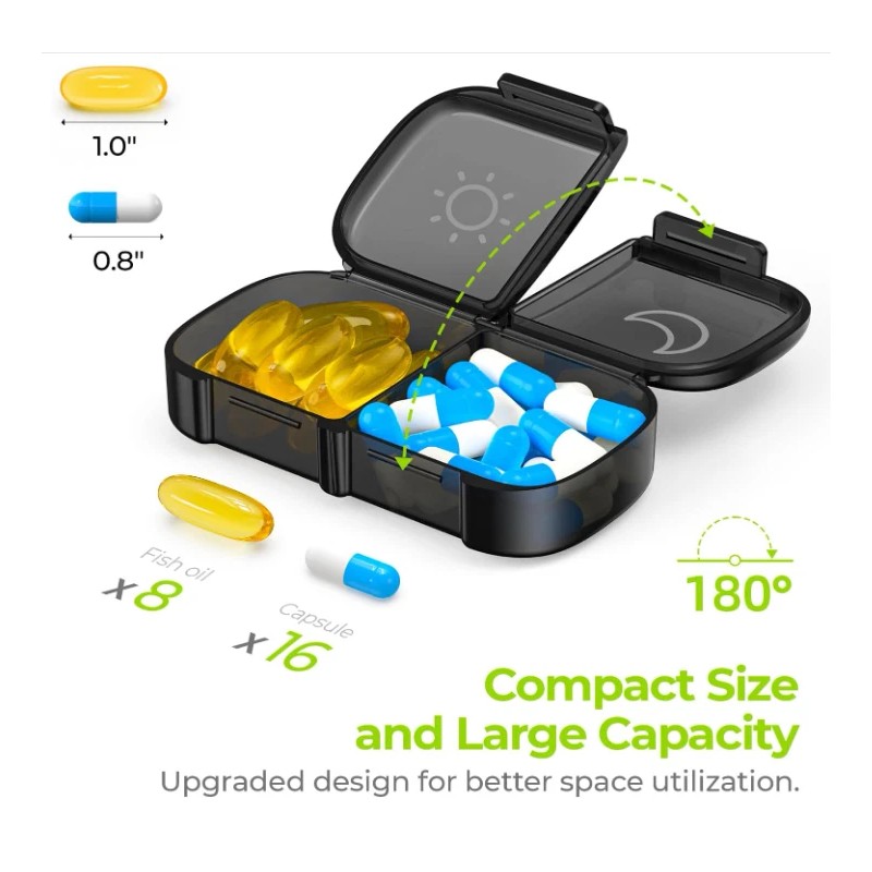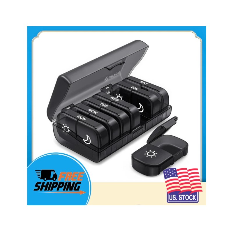 AUVON XL Pill Organizer 7-Day AM PM Box – Large Easy Open Compartments
